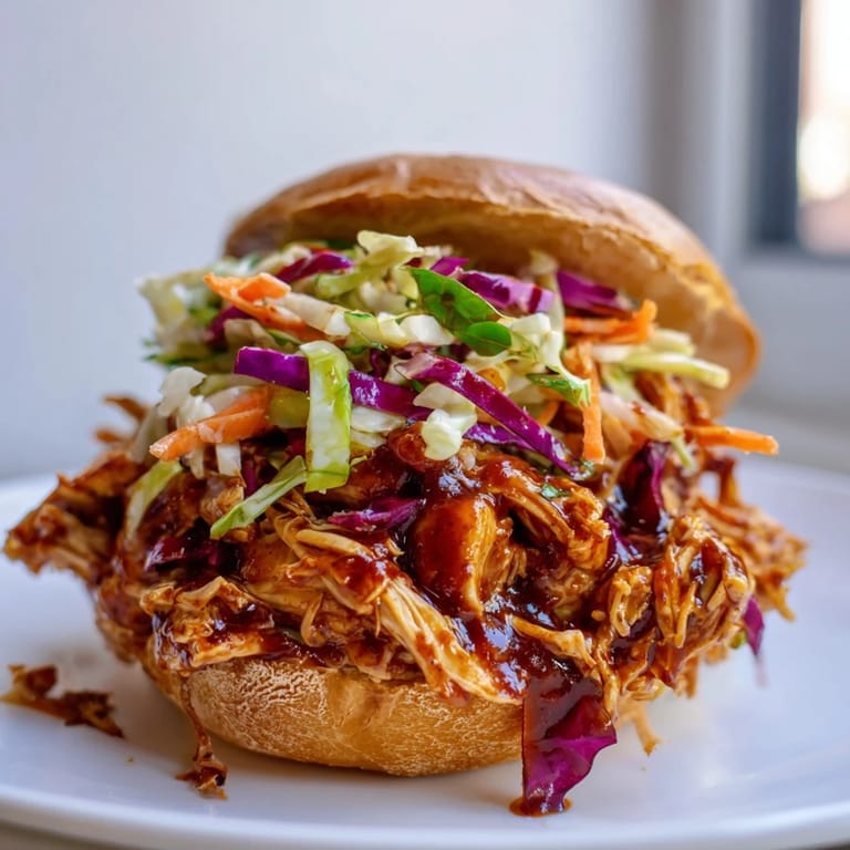 Pin It My neighbor showed up at my door one Saturday with a foil-wrapped pan of pulled chicken still warm from her oven. She'd made too much for her family cookout and thought I might want some. I toasted a bun, piled it high, and took one bite standing over the sink. The smoky sweetness mixed with that crisp, tangy slaw was so good I texted her immediately asking for the recipe. She laughed and told me it was almost embarrassingly simple, which made me love it even more.